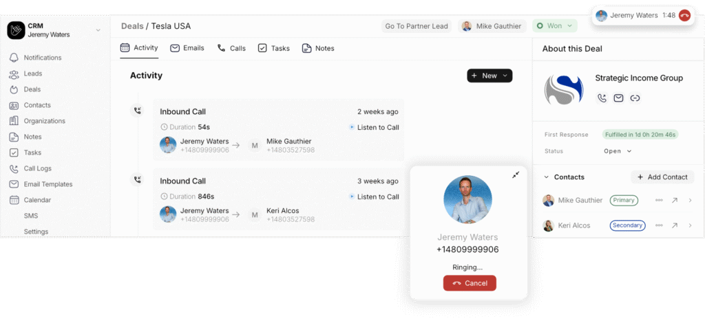Automate outbound and inbound call processes to streamline customer interactions, route calls efficiently, and trigger follow-up actions based on call outcomes.